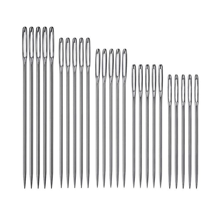 - BEAUTIFUL Tube:25pcs Hand Sewing Needles in 1 Transparent Storage Tube. All Needles in Assorted Sizes-- 5pcs 2.4 inch (super large eye needle), 5pcs 2.2 inch (super large eye needle), 5pcs 2.0 inch (large eye needle), 5pcs 1.8 inch(large eye needle), 5pcs 1.6 inch(large eye needle). We offer 2 Threaders(Free gift).